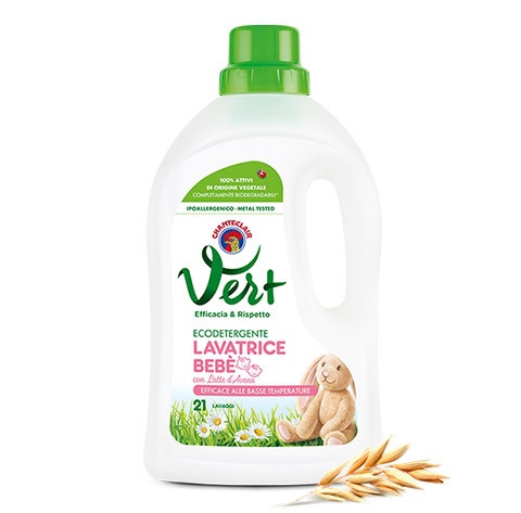 Öko folyékony mosószer zabtejjel és kamillakivonattal dúsítva, kifejezetten babáknak és érzékeny bőrűeknek.