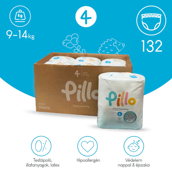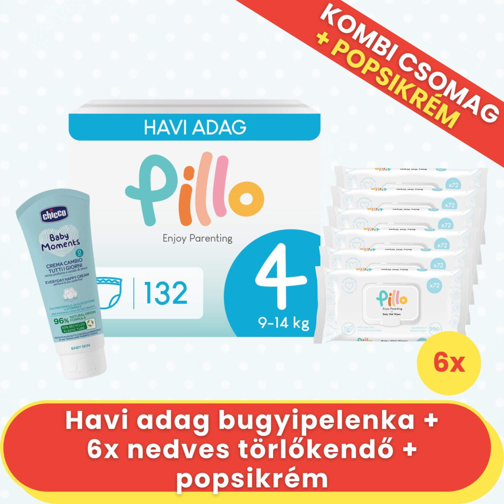 PILLO mindenmentes PURE bugyipelenka KOMBI+ CSOMAG (törlőkendővel és popsikrémmel) - 4-es méret (9-14 kg)