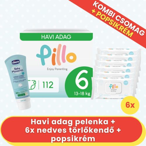 PILLO mindenmentes PURE pelenka KOMBI+ CSOMAG (törlőkendővel és popsikrémmel) - 6-os méret (13-18 kg)