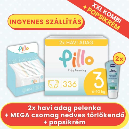 Pillo pelenka XXL KOMBI+ csomag (nedves törlőkendővel és popsikrémmel) – kényelmes, okos és pénztárcabarát választás