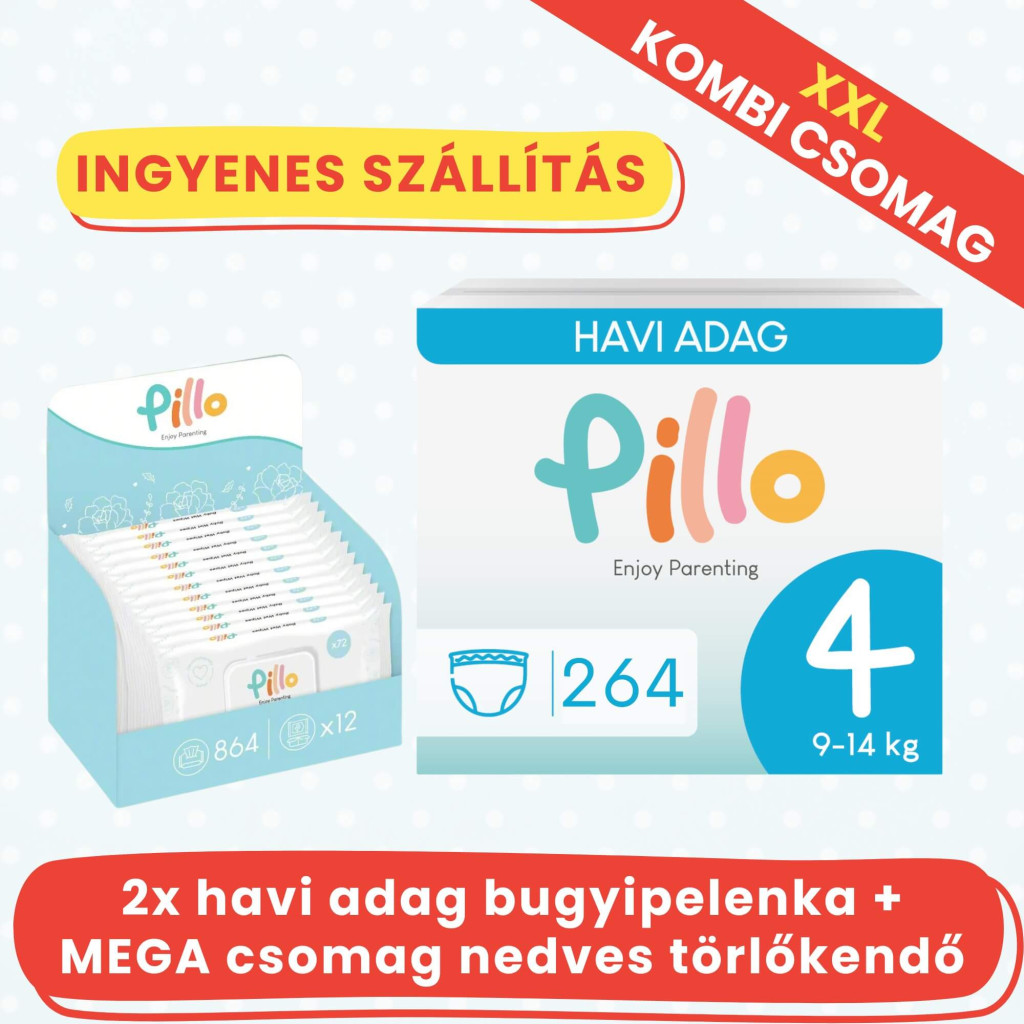 PILLO mindenmentes PURE bugyipelenka XXL KOMBI CSOMAG (törlőkendővel) - 4-es méret (9-14 kg)