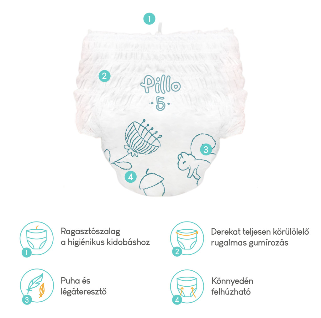 PILLO mindenmentes PURE bugyipelenka XXL KOMBI CSOMAG (törlőkendővel) - 5-ös méret (11-16 kg)