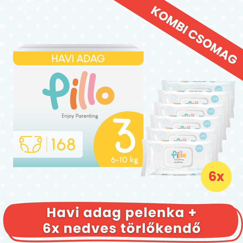 PILLO mindenmentes PURE pelenka KOMBI CSOMAG (törlőkendővel) - 3-as méret (6-10 kg)