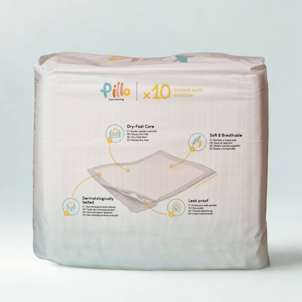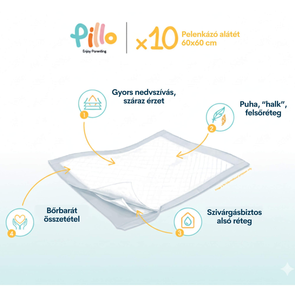 Pillo nedvszívó pelenkázó alátét 60×60 cm – tiszta csere, bárhol, bármikor – 10 db