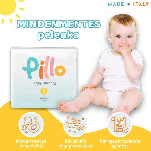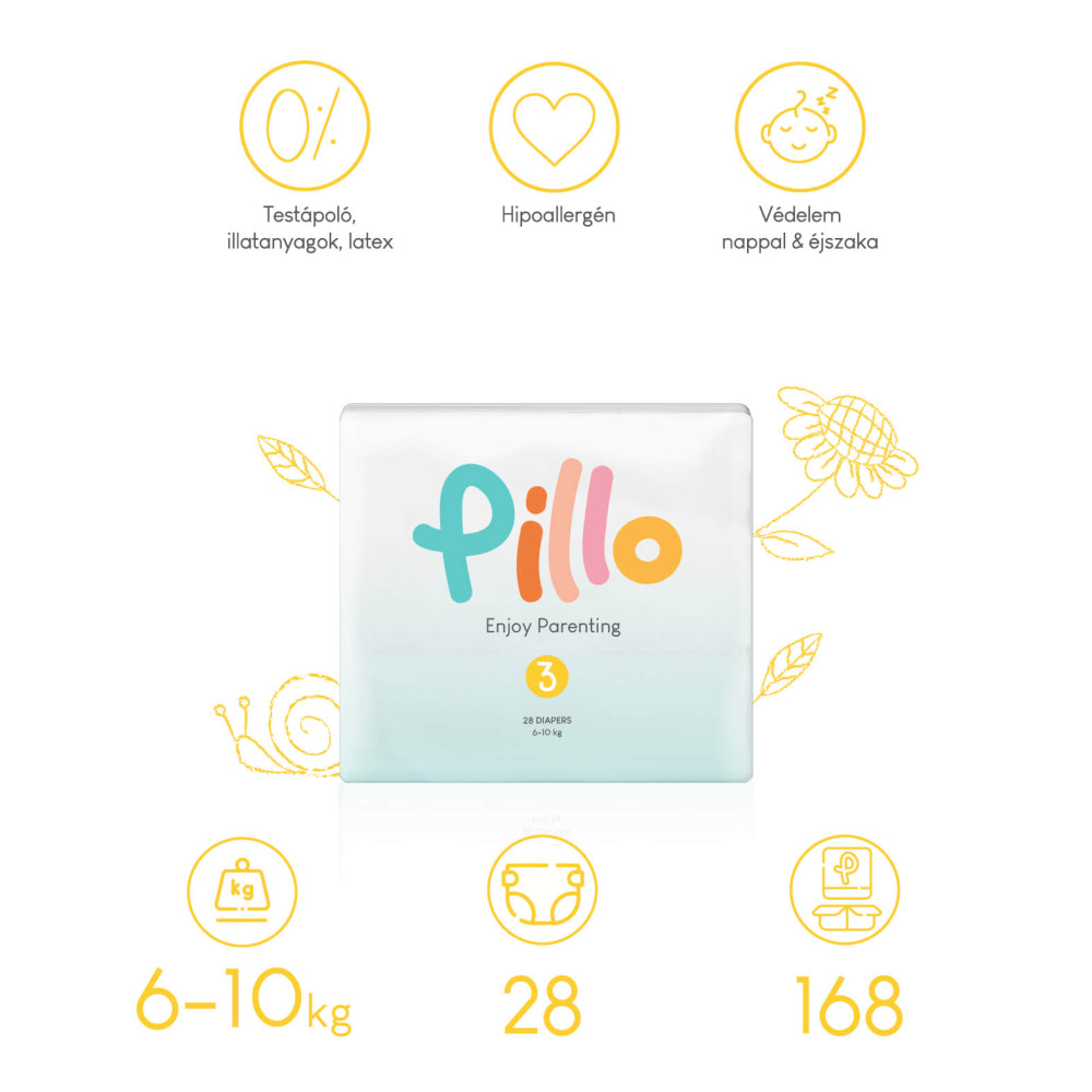 Pillo prémium pelenka, szuper nedvszívó, hipoallergén, 3 (midi), 6-10 kg, 28 db