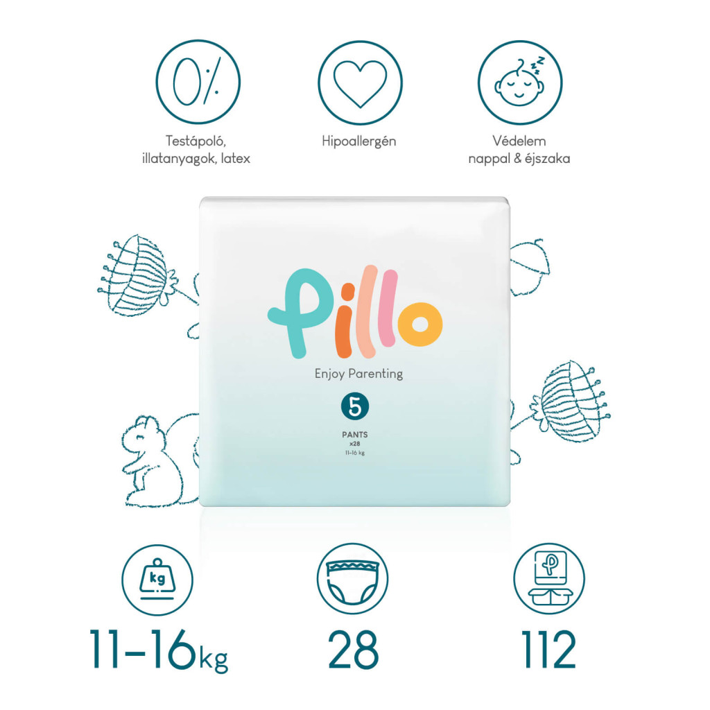 Pillo BUGYIPELENKA, prémium minőség, szuper nedvszívó, HAVI ADAG, 5 (junior), 11-16 kg, 112 db